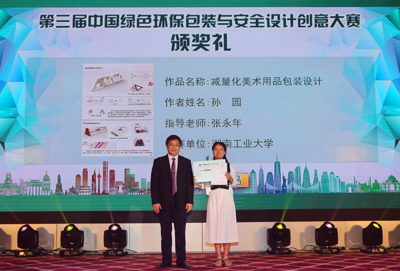本次大赛,由国内(含香港、台湾)包装、设计教育界知名教授和企业资深设计人士组成的评审组,对来自全国1720份参赛作品进行了严格评审,最终评出特等奖1名,一等奖3名,二等奖10名,三等奖50名,我校积极参加此次大赛,共有20余件作品获奖,其中,我校孙园同学设计作品《减量化美术用品包装设计》荣获一等奖。