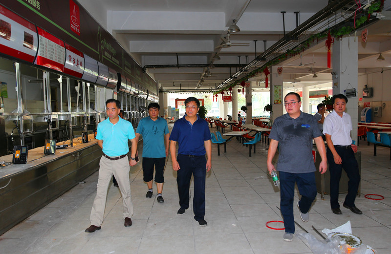8月9日,谭益民率副校长王利华、李可兴及办公室、基建、后勤、资产、财务、审计等部门负责同志,深入各项目建设现场,看望慰问工人,查看工程进展,并随即召开现场办公会,就施工过程中的一切难点问题与新情况进行现场解决。他强调,各部门要同心协力、攻坚克难,按时推进各施工项目的维修改造与建设进度,完善相关设施配置,确保新学期为学生提供更加优质的后勤保障服务,做到让学生满意、让家长放心。