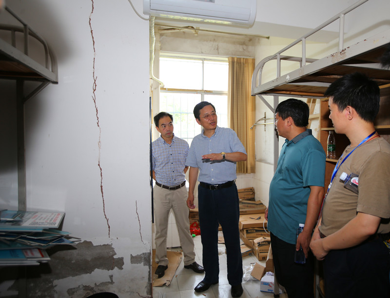 今年暑假,学校建设与维修任务十分繁重,近百个项目同期进行,数百名工人奋斗在各施工现场。党委书记唐未兵、校长谭益民十分关心工程进展情况和高温酷暑中加班的同志工作情况。8月4日,刚从国外研修回来,唐未兵顶着40度的高温,在副校长王利华及基建、后勤、资产等部门负责同志的陪同下,深入每一栋学生宿舍,亲切看望施工人员、仔细查看设施设备、详细了解施工组织。他叮嘱高温工作的同志,一定要注意安全,严防中暑。他要求大家再接再劢,突出细节,如期完成改造任务,以崭新的宿舍环境迎接新学期学生的到来。