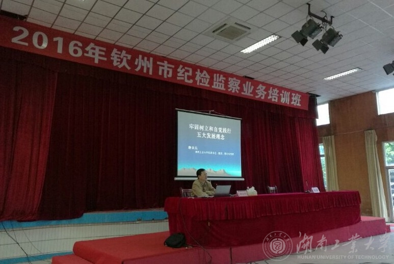 11月10日,应中共广西钦州市委邀请,校党委书记唐未兵教授在中共钦州市委组织部主办的“2016年钦州市纪检监察业务培训班”上,为钦州市各县(区)专职党委副书记、纪检书记、全市副处级以上纪检干部和中共钦州市委党校中青班学员共300多人,作了一堂专题讲座。