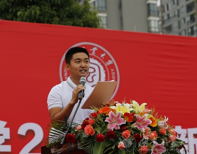 新校区2016级新生代表包装与材料工程学院包装工程1603班蒋云迪同学作代表发言