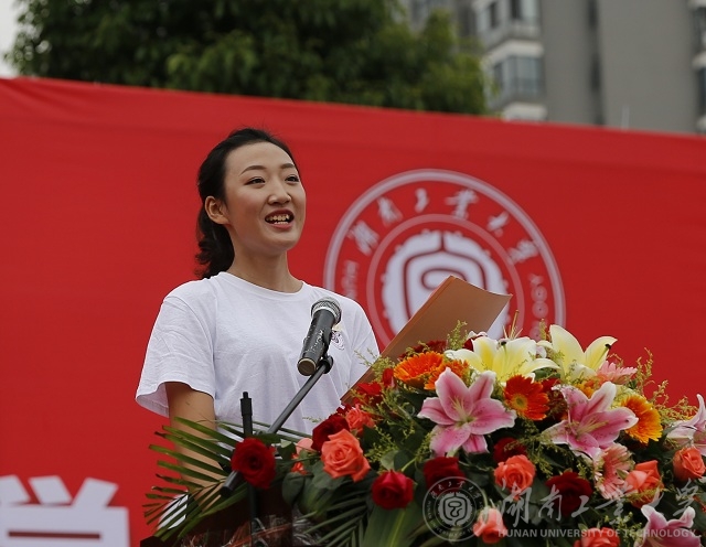 新校区在校生代表文学与新闻传播学院2015级硕士研究生徐恺鸿同学作代表发言