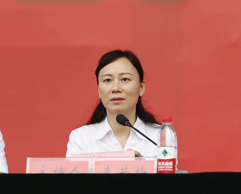 副校长李若梅主持开学典礼并在军训动员大会上讲话