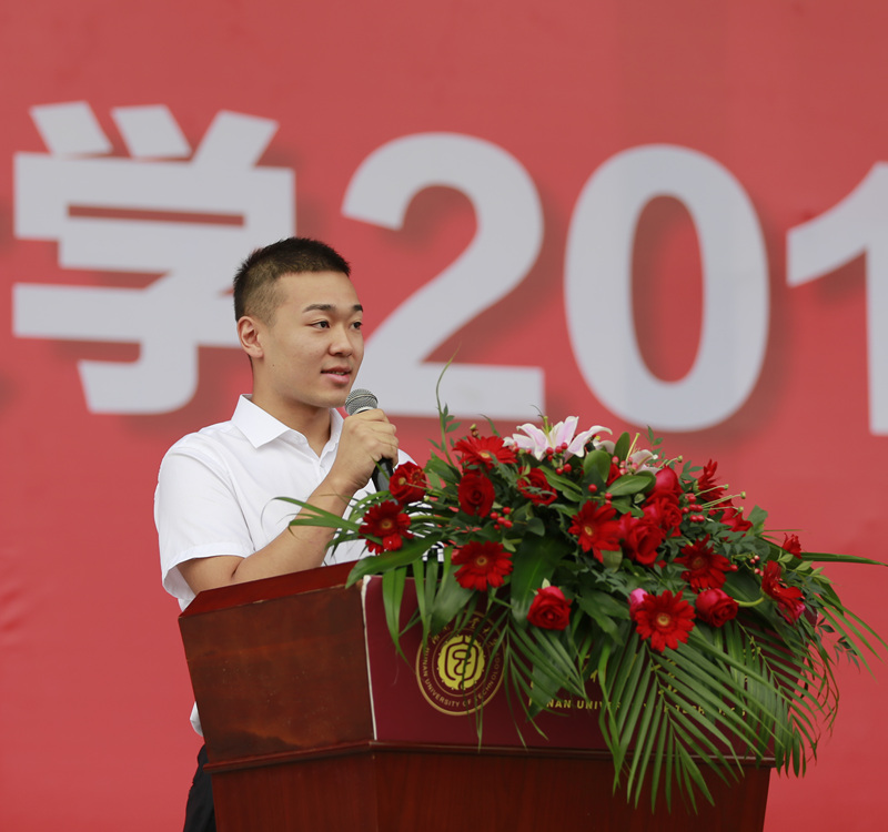 刘扬代表学校和全体师生员工对2019级新同学表示热烈欢迎。他说,在举国喜迎新中国70华诞之际,同学们进入大学校园开启新的人生征程,这是难得的人生际遇,也是宝贵的时代馈赠,更是一份沉甸甸的期许和责任。他希望2019级新生:一要养成健全人格,练就强健体魄,培育积极心态;二要学会学习,敢于质疑,追求创新,脚踏实地;三要拓展知识视野,培养家国情怀,担当社会责任,志存高远,把人生梦想汇入时代洪流,让蓬勃青春与家国情怀共振。