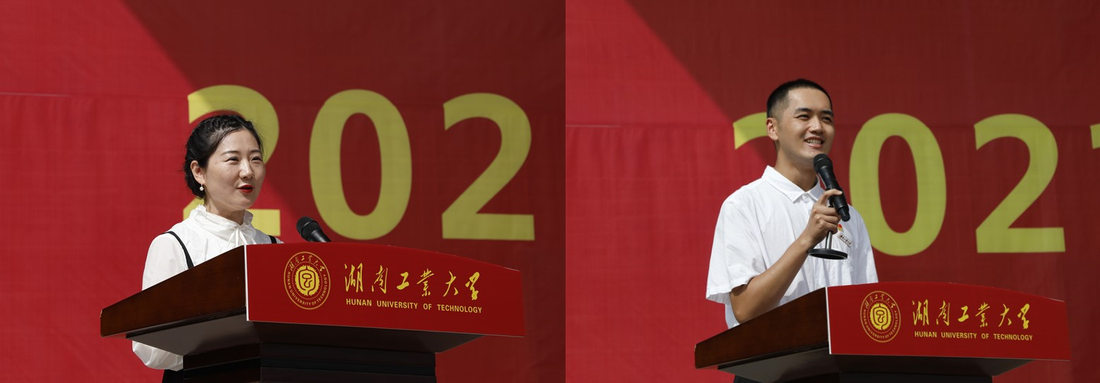 在开学典礼中,教师代表蔡琨、在校生代表黄昊、新生代表丁莎、于圣永、周艺、刘锡铭在典礼上发言,激励同学们把“个人梦”融入党和国家的共同奋斗当中,发奋图强,勇攀高峰。新生代表林彦君带领全体新生进行了庄严的入学宣誓。