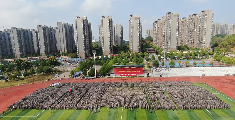 9月30日上午,我校2021级新生开学典礼暨军训总结表彰大会在第二田径场举行。全体校领导出席,相关职能部门、各学院负责人、教师代表以及2021级全体新生参加大会。校党委副书记王利华主持大会。