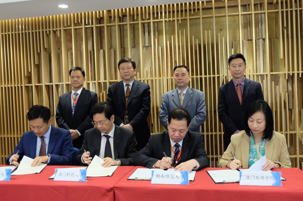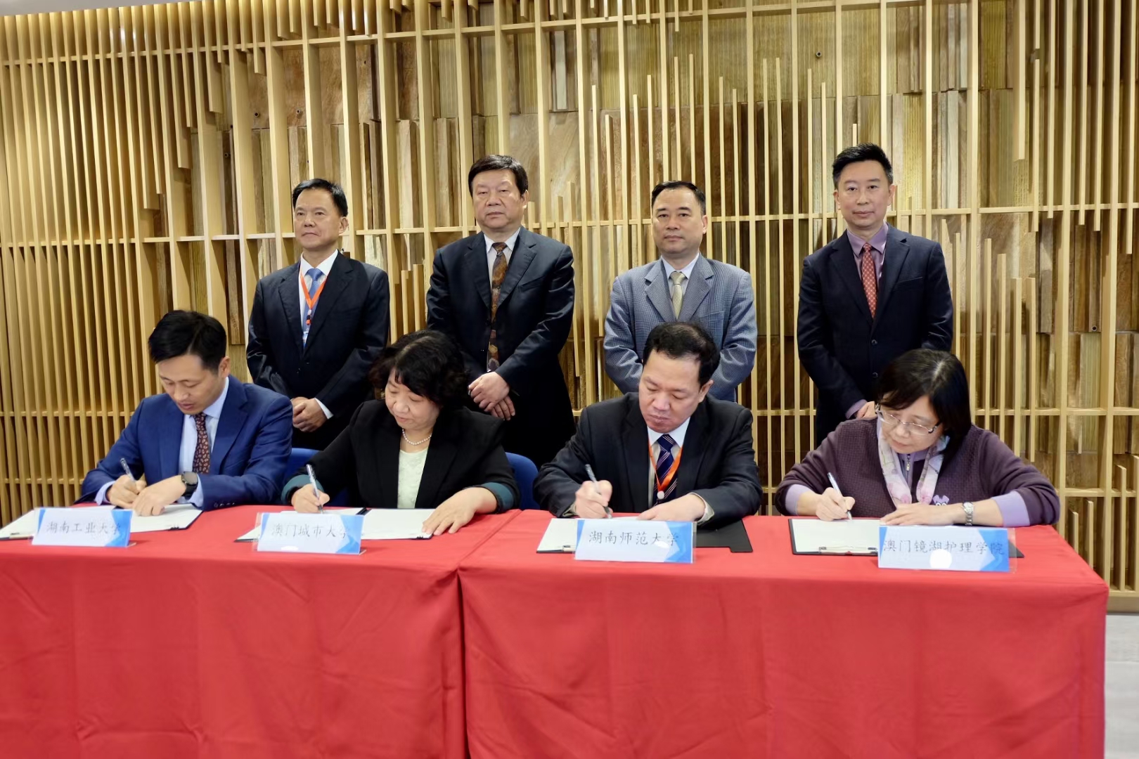 应澳门高等教育局的邀请,校长刘扬于12月9-12日随同湖南省政协科教代表团一行共20人访问了澳门高等教育局、经济局等政府机关,以及澳门大学、澳门科技大学、澳门城市大学、澳门旅游学院、圣若瑟大学、镜湖护理学院六所高校。刘扬与澳门科技大学副校长林志军教授签署了两校合作备忘录,与澳门城市大学代校长孔繁清教授签署了两校学术交流协议,开启了我校与澳门高校合作交流新篇章。港澳台事务办公室负责人随同访问。