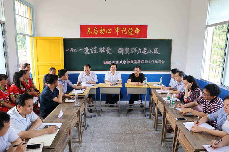 唐未兵强调,一是要深入学习习近平总书记关于扶贫工作的重要讲话精神,特别是贯彻好“六个精准”“五个一批”的总要求,以习近平新时代中国特色社会主义思想为引领,以党建促驻村帮扶,以党建促脱贫攻坚,真正做到“扶贫”和“扶志”“扶智”相结合。二是要充分发挥驻村工作队的桥梁作用,驻村队员要发扬吃苦耐劳的精神,尽快融入到茶园村的群众中去,把工作做细做扎实,要及时向县委县政府和学校作好汇报,在各级政府的帮助和支持下,精准规划茶园村三年脱贫致富蓝图,做到“精准”“实际”“特色”。三是加快实施驻村帮扶项目,对标对表尽快实施茶园村基础设施、民生项目工程及环境整治,重点建好党建工作宣传专栏、党员活动室等项目,对村中心区进行提质改造;突出教育扶贫优势,对村民开展教育培训。他表示,湖南工大全体师生一定要与邵阳各级政府紧密配合,与全体村民通力合作,共同打好茶园村脱贫攻坚战。