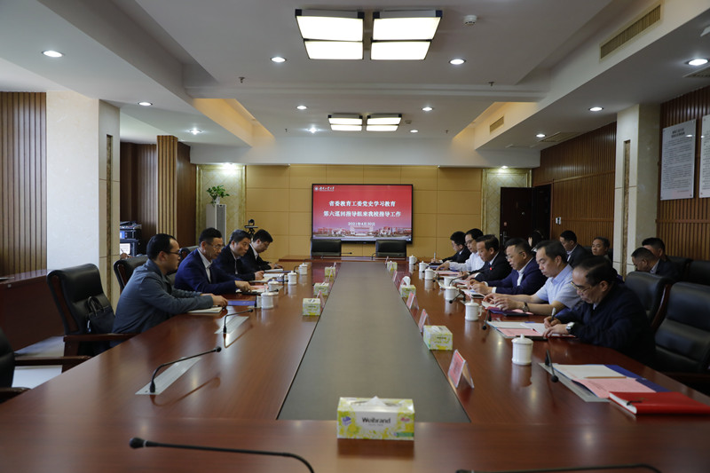 在全校上下深入推进党史学习教育的关键节点上,4月30日上午,省委教育工委党史学习教育第六巡回指导组来校调研指导学校党史学习教育开展情况。调研指导座谈会在崇德楼340会议室举行,校领导谭益民、王利华、佘朝文、蒋建初、张亚东、于惠钧、殷晓元,党史学习教育工作领导小组办公室成员、相关职能部门负责人参加。