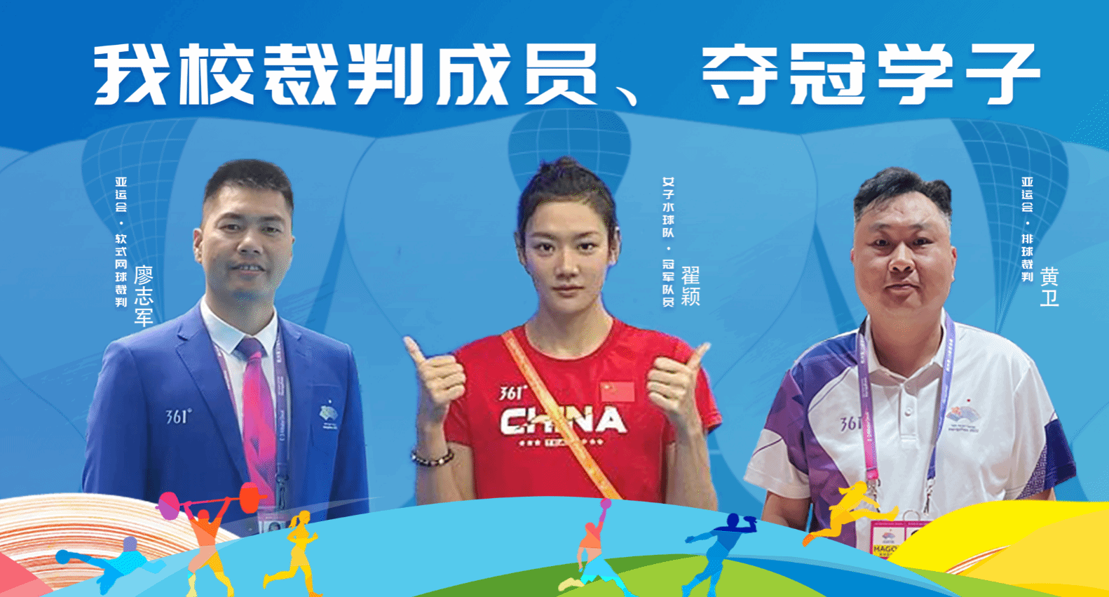 体育学院廖志军、黄卫两位老师分别担任亚运会软式网球技术与排球项目裁判员。廖志军老师是软式网球国家级裁判员,美国体能训练协会体能教练员,中国体育科学协会体能分会体能训练员,拥有广州亚运会软式网球、世界软式网球锦标赛、全国软式网球锦标赛等丰富的执裁经历。黄卫老师是排球国家级裁判员,中国排球超级联赛执哨裁判员,拥有广州亚运会、2001世界大学生运动会、世界军人运动会等丰富的执裁经验。