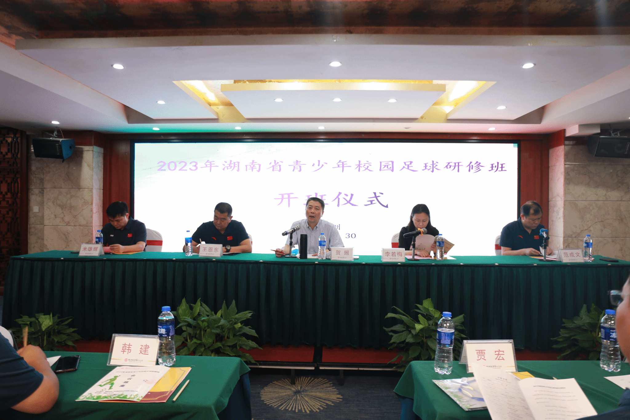 6月30日上午,2023年湖南省青少年校园足球研修班开班仪式在我校举行,副校长李若梅出席,湖南省教育厅体卫艺处处长、校园足球办公室主任贺照及来自省内11 所具有招收足球高水平运动员的高校和25 所具备较高水平足球建设基地的中学共计130余名领导、专家、教练员参加。