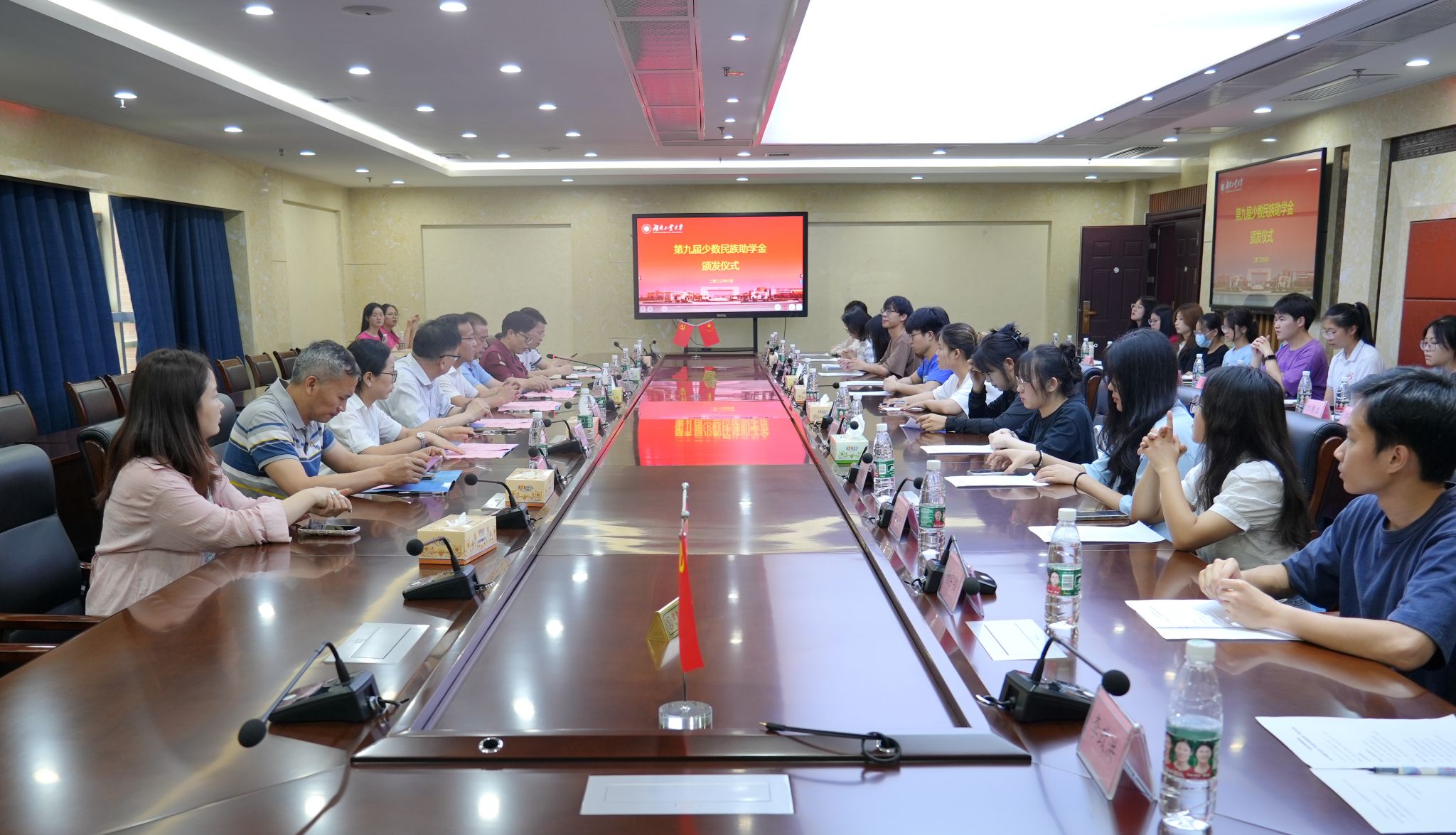 6月13日,我校开展第九届少数民族企业捐资助学活动。副校长佘朝文出席,株洲市少数民族联谊会秘书长刘兴泉、捐资助学单位代表株洲新时代输送机械有限公司覃雪枝、湖南科瑞变流电气股份有限公司张富良及30名受捐助的学子参加活动。