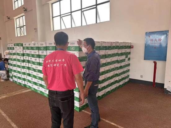 11月12日,株洲百货股份有限公司龙红艳总经理听闻湖南工业大学3万余名师生实行静默管理,心系抗疫一线师生,主动联系学校,自动发起向我校开展防疫捐赠。委托罗文副总经理亲自组织货源、统筹运输,捐赠了10余吨新鲜蔬菜、大量方便面、牛奶、矿泉水等物资,保证工大每位学子都能获得一份抗疫爱心礼包,为同学们送去了一缕温馨、一丝温暖,以“食”力助力“工大”抗疫。