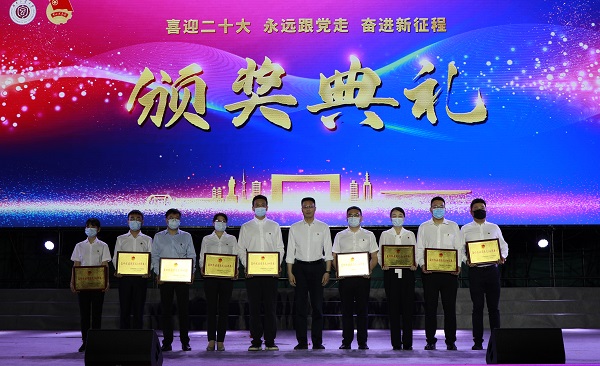 活动对2021-2022年度湖南工业大学“五四”先进集体和个人进行集中表彰,获奖代表上台领奖。其中,音乐学院团总支等9个学院团总支(分团委)获评“五四红旗团总支(分团委)”、理学院等8个学院学生会获评新时代先进学生会、爱在工大·义工联合会等8个社团获评“优秀社团”、何奕恒等418人获评优秀共青团干部、孙志壮等1302人获评优秀共青团员、杨清霖等10人获评工大好青年。