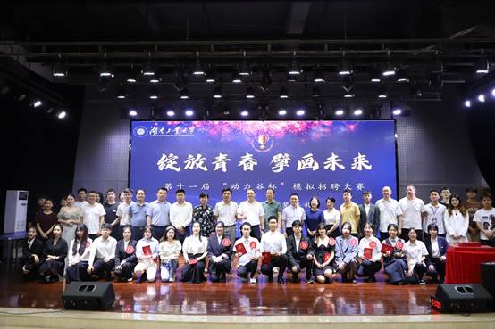 6月14日晚上,由校招生与就业指导处、校团委共同主办的“绽放青春·擘画未来”第十一届“动力谷杯”模拟招聘大赛总决赛在文新学院演播厅举行。株洲高新区动力谷创新创业服务中心副主任郭超、株洲市就业服务中心主任胡炜、立方新能能源、千金药业的人力资源负责人以及我校职业生涯与就业指导专家库的老师担任此次评委。各学院党委副书记、就业专干、学生代表近200人参与活动。