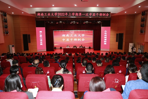 党委书记刘望讲话。他谈及了履新任职以来的工作感受,他表示,通过为期二十多天的调研,对学校的基本情况有了初步的了解,学校经过一代又一代工大人的辛勤耕耘和无私奉献,学校办学思路越来越清晰、办学条件越来越优化、办学特色越来越鲜明、办学成就越来越显著。特别是近些年来,学校的社会影响力越来越大,坚信湖南工业大学的发展必将迎来一个崭新的发展时期。他强调,当前必须抓紧做好几项重要工作:一要以党建工作为引领,全面加强学校各级队伍建设。即要全面加强以校领导为核心的干部队伍建设,全面加强以立德树人为根本的教师队伍建设和全面提升管理干部队伍素质。二要以项目建设为抓手,全面加强学校内涵建设。以博士点复核与申报为抓手的学科学位点建设必须按既定目标加速推进;以校风学风建设为抓手的人才培养质量必须有根本性转变;以对接产业服务地方为抓手的科学研究必须加快形成特色。三要以改善民生为抓手,全面提升学校办学效率。要强化目标导向,充分发挥绩效的引领作用;要强化考核功能,充分发挥监督的强制作用;要强化贡献引领,让干实事成为学校最美风景线。他对全体中层干部提出用团结意识凝聚人心、用发展意识激发活力、用责任意识实现跨越、用规矩意识强化保障等四点要求。