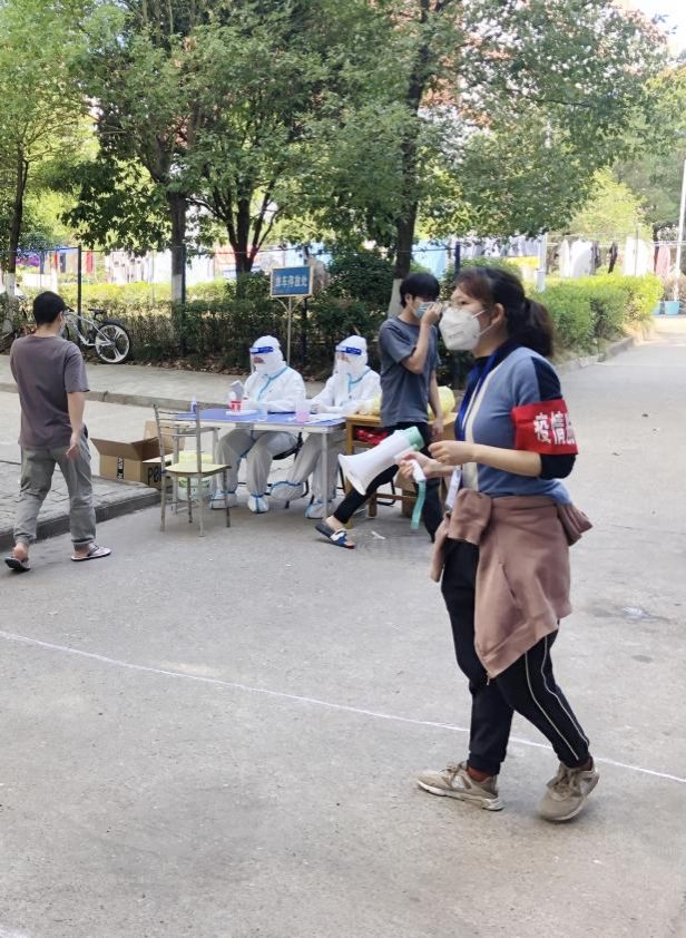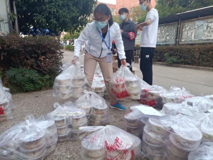 11月14日上午,随着株洲城区低风险地区开放,材料学院肖霄老师的爱人和女儿给她送来御寒衣物时,一声“妈妈”让半个月未见的肖霄母女流下了激动的眼泪。隔着校门,接过经过消毒的衣物,匆匆叮嘱几句后,肖霄老师转过身骑上自行车奔向西苑学生宿舍区,因为该给学生送中餐了。时间回到11月2日凌晨四点,肖霄老师在电话里脱口而出:“我没有困难,随时可以出发。”事实上,刚知道封控驻校管理的消息时,她陷入了艰难的抉择:老公是一名在一线备勤的警察,公婆家住省外,父母身在邵阳疫区,6岁的女儿独自在家。她徘徊过后毅然决然把幼子交给邻居照看,收拾行李进驻办公室,没有床,就睡乒乓球台,没有水房,就在厕所接水洗漱,想孩子,就在深夜听听女儿的语音留言。疫情初发之时,因学院多名老师隔离无法支援,她与四名同事撑起了学院及楼栋学生的全部管理和服务工作。作为西苑7栋宿舍的楼栋长和2020级辅导员,每天奔波于楼层上下,穿梭于楼道之间,组织派发盒饭、落实核酸检测,处理突发情况、关心慰问学生,包揽了线下学生管理工作,平稳度过了模式切换、人手不足的艰难时期。直至今日,她依然坚守岗位,选择全程陪伴学生,履行“楼栋管家”的职责。她说:“我是一名女儿、母亲、妻子,也是一名学工人,学生在哪,我就要守护在哪!”