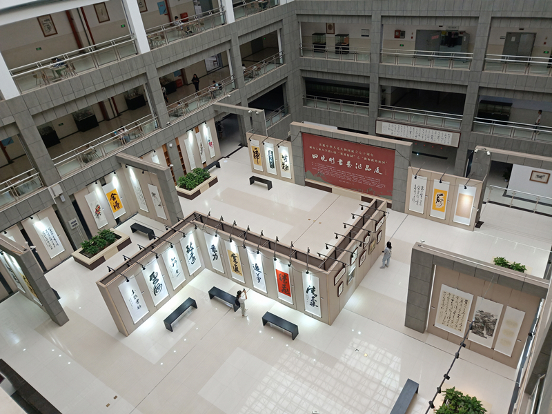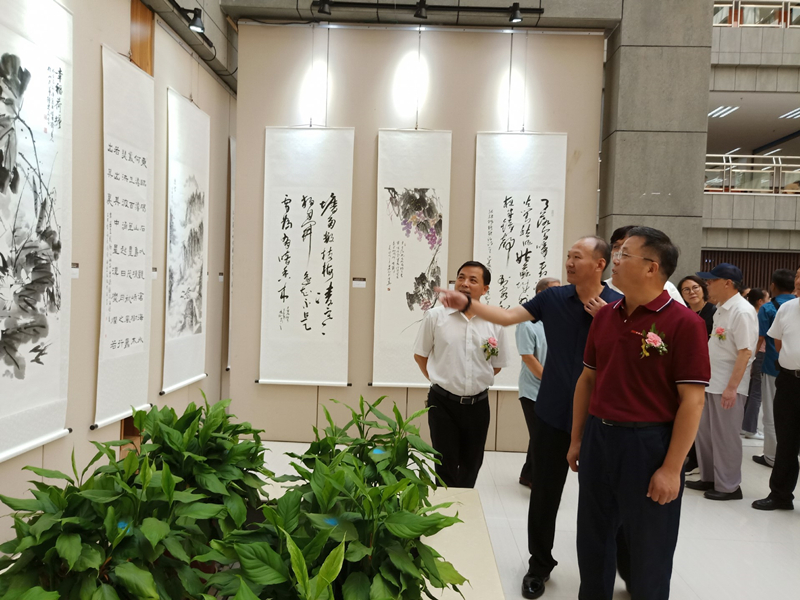 为庆祝中华人民共和国成立70周年,继承与弘扬中华优秀传统文化,9月24日上午,我校第34届“墨香校园”之“我和我的祖国” 田晓刚书画作品展在图书馆举行。北京师白艺术研究会会长娄述德,国际艺术家协会主席侯荣亚,北京正举沈鹏书画院院长正举沈鹏,民革湖南省委副主委、株洲市委主委、株洲市人大常委会副主任刘春生,株洲市文联副主席娄雷,我校校领导谭益民、韩清波、范晓阳出席,学校相关部门负责人及部分师生代表等200余人参加了开幕式。开幕式由校党委委员、副校长范晓阳主持。