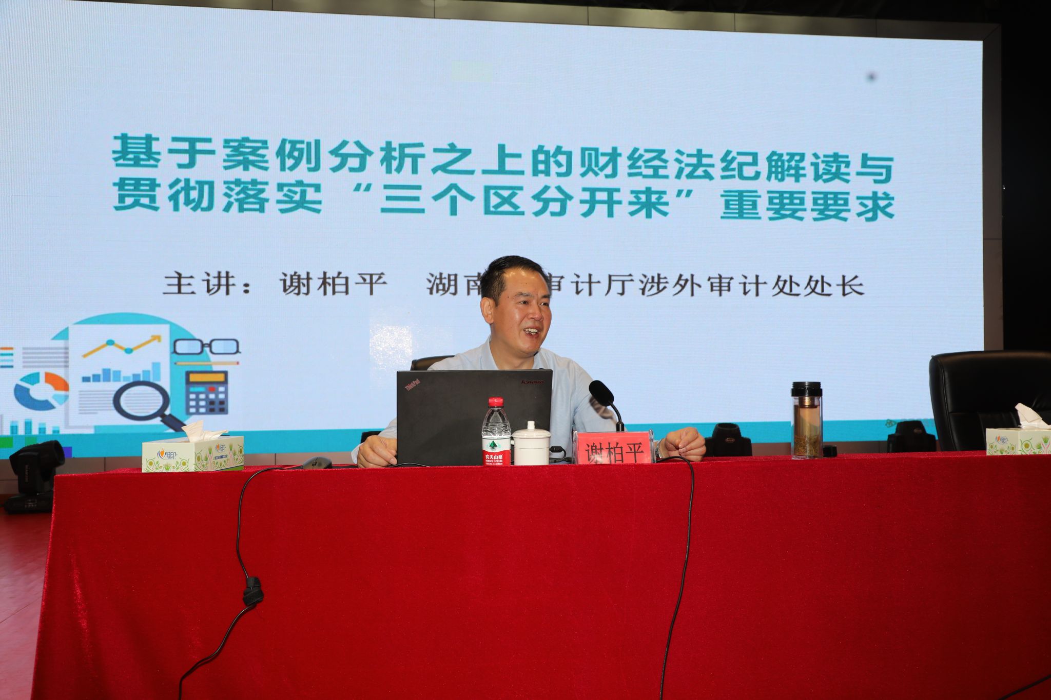 谢柏平作题为《基于案例分析之上的财经法纪解读与贯彻落实“三个区分开来”重要要求》的专题讲座。他结合自己的工作经历,深入浅出,理论联系实际,从“既要讲原则,又要讲道理”“既要精明,又要靠谱”“既要对领导负责,又要对事业负责”“既要依法依规依程序,又要实事求是讲效率”“既要守住底线,又要贯彻落实‘三个区分开来’”等五个方面娓娓道来。他用鲜活的案例和严谨又风趣的语言,通俗地为我们解读了专业的理论知识,对于我们进一步学习贯彻审计法,提高学校财务管理水平,增强教职工的财经法纪意识有重要意义。