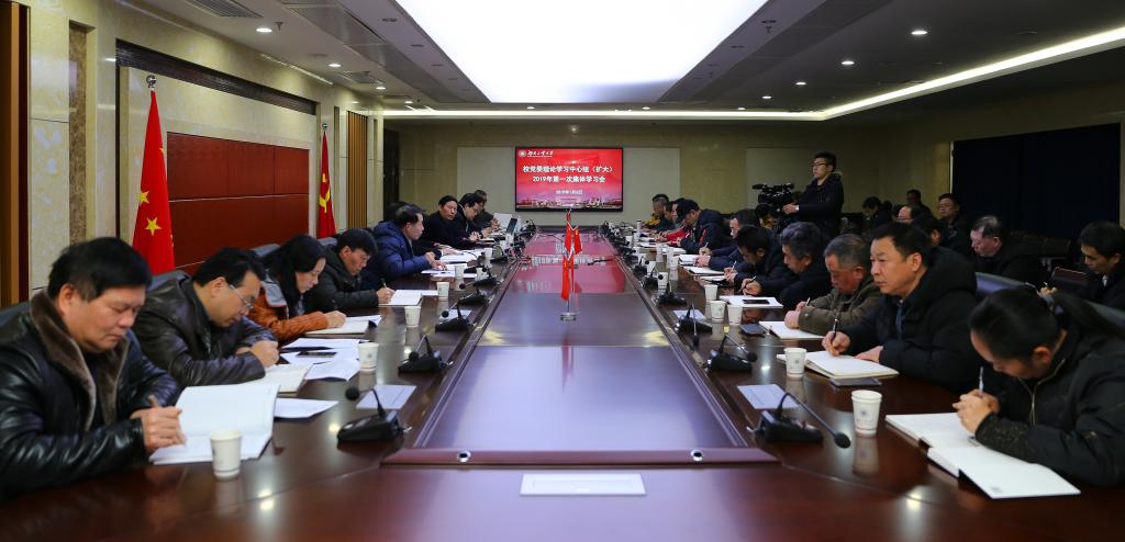1月3日下午,校党委理论学习中心组开展2019年第一次(扩大)集体学习会,集体学习新思想和民主生活会相关知识。校领导、二级党组织书记、党群部门负责人参加,校长谭益民主持学习会。