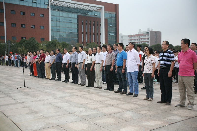 10月1日上午8点,我校国庆升国旗仪式在河西校区隆重举行,校领导唐未兵,张昌凡、罗定提、陈邵桂出席仪式,党办、组织部、宣传部、学生处团委、各学院负责人及3000多名师生参加了本次升旗仪式。