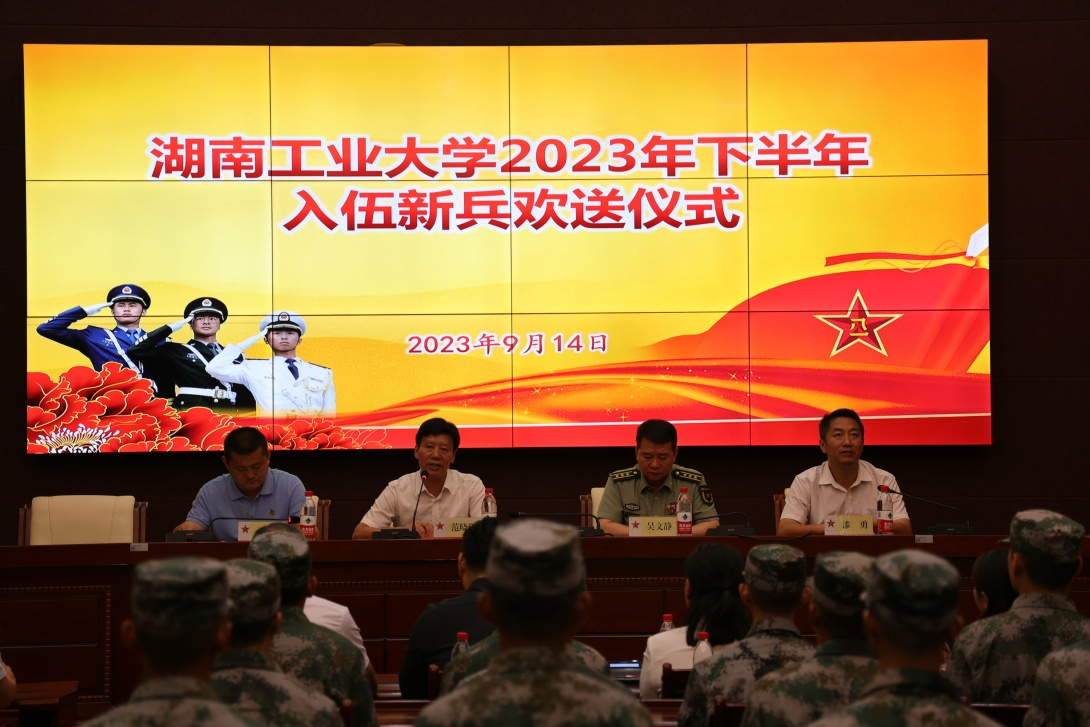 9月14日上午,我校在株洲市天元区人武部会议厅举行2023年下半年新兵入伍欢送仪式。副校长范晓阳出席,校武装部全体人员、部分二级学院党委副书记、全体新兵参加会议。