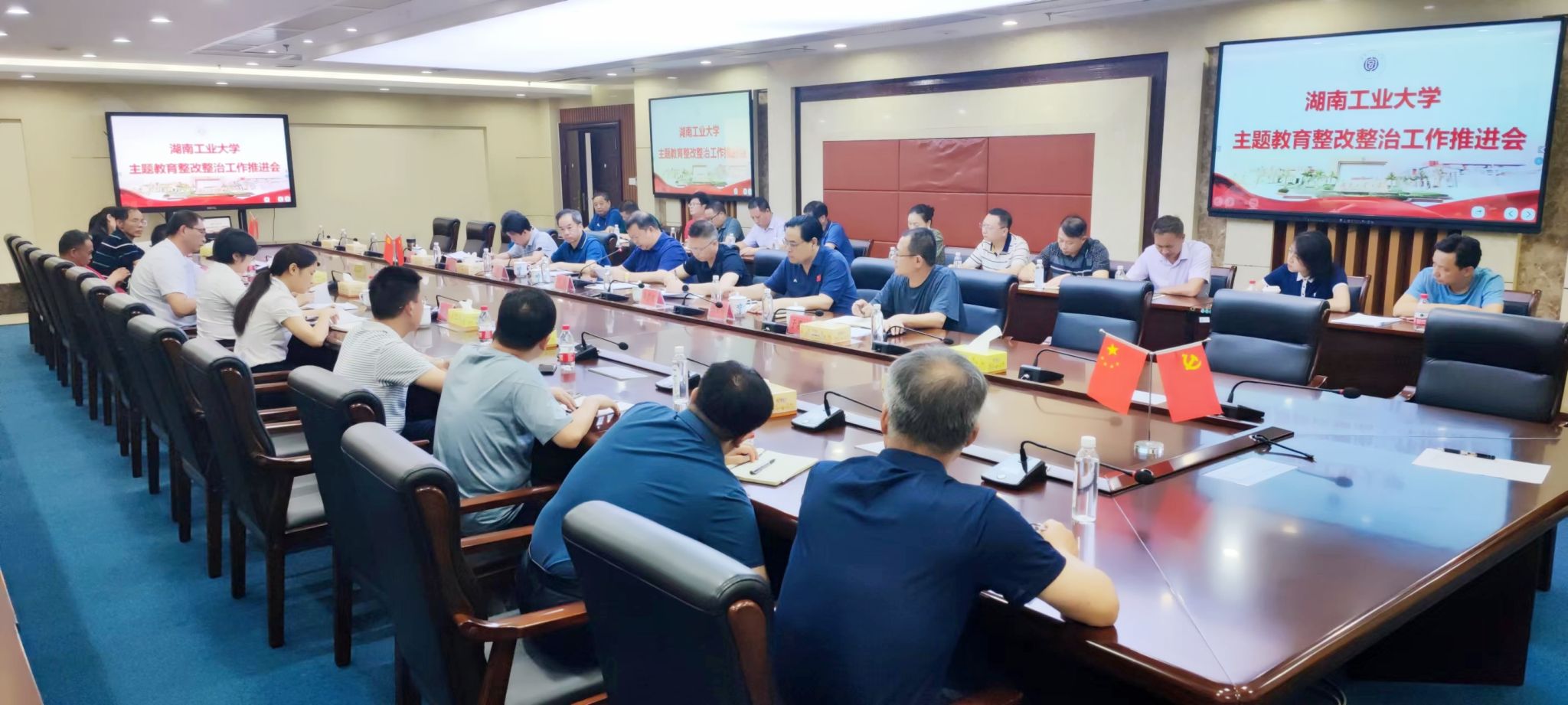 7月26日下午,我校在崇德楼401会议室召开主题教育整改整治工作推进会,传达全省主题教育整改整治工作会议精神,总结学校主题教育“以学促干”工作情况,安排部署下一步主题教育及整改整治工作。省委主题教育第27巡回指导组联络员陈静和张艳到会指导。党委书记刘望,校长蒋昌波,全体在家校领导出席。党委副书记王利华主持会议。