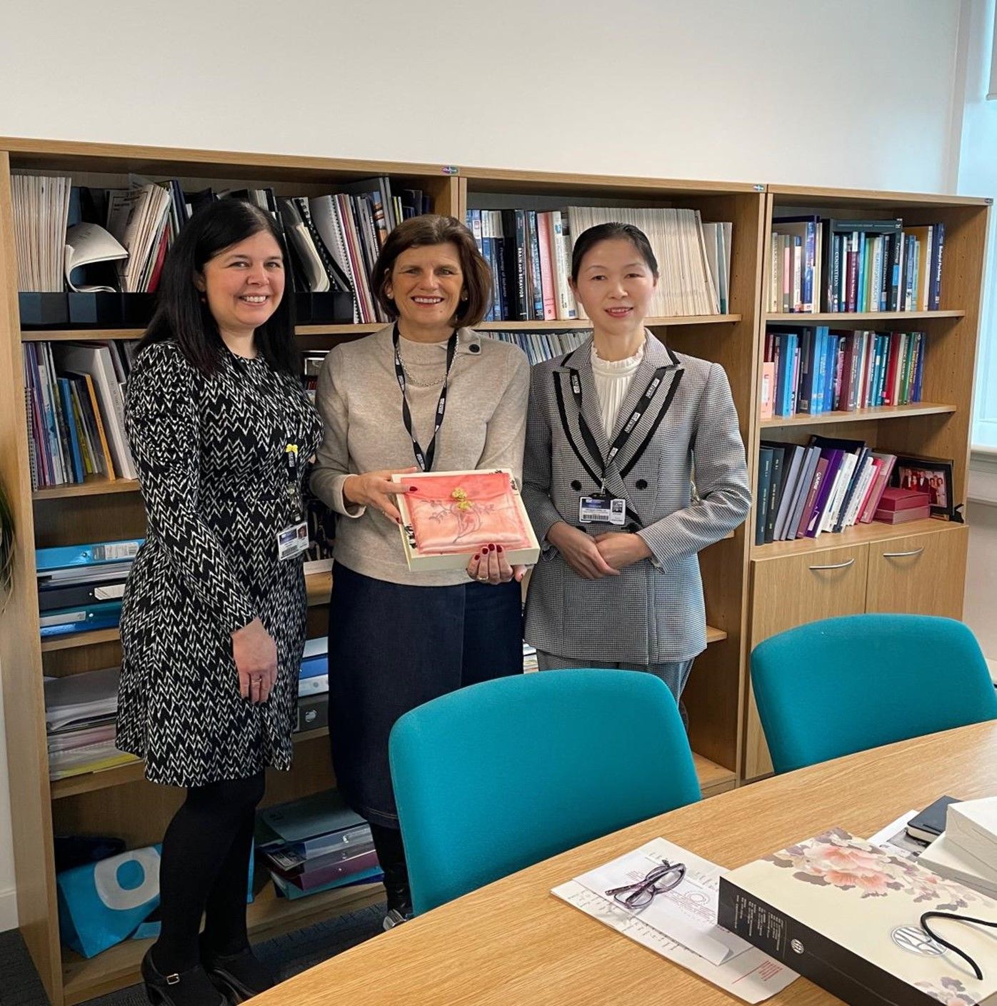 12月13日,在德比大学高级国际事务主任、中国事务负责人何銘業陪同下,我校刘中艳教授受学校委托拜访了德比大学校长Kathryn Mitchell教授,向Kathryn Mitchell转交了校长蒋昌波教授的亲笔信,并代表学校向Kathryn Mitchell赠送了湘绣丝巾,以此表达对德比大学发展新篇章的美好祝愿以及对两校合作前景的美好期待。