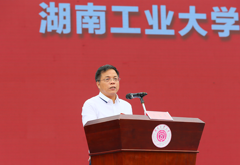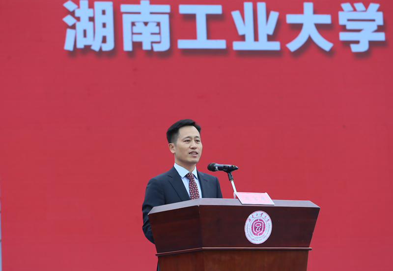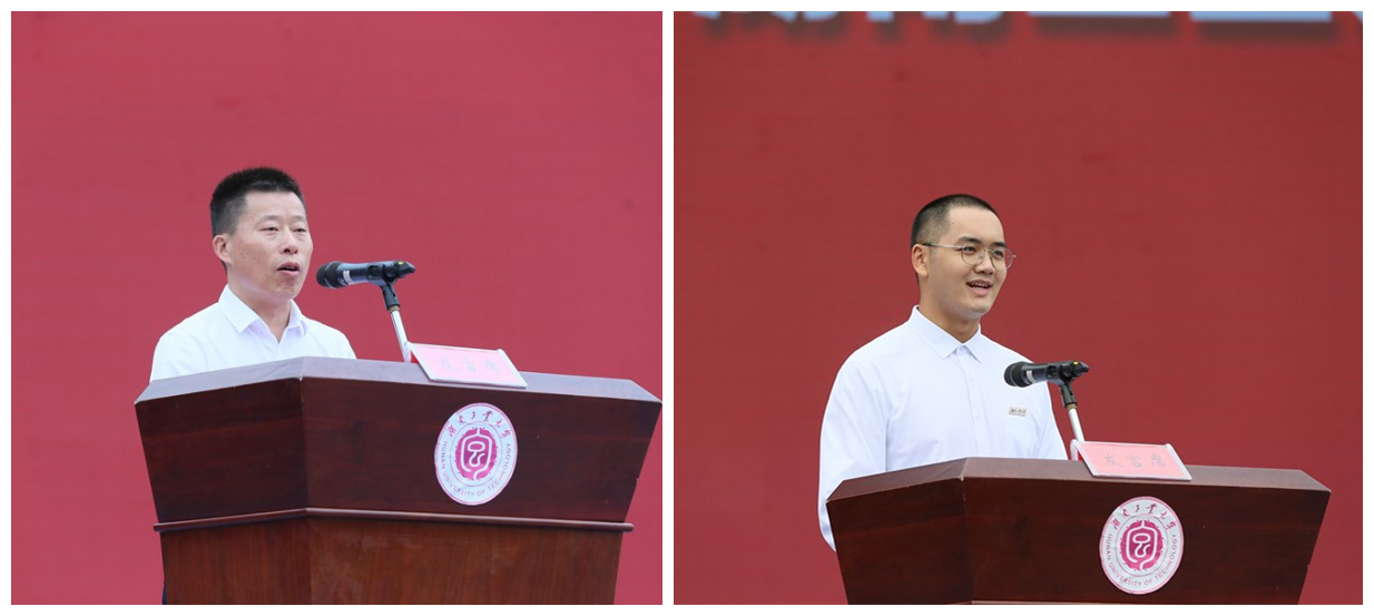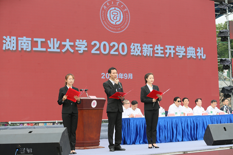 教师代表刘文良寄语广大新生珍惜韶华、脚踏实地,把远大抱负落实到实际行动中,让努力拼搏成为青春飞扬的动力,让苦练本领成为青春搏击的能量。在校生代表黄昊分享了他作为志愿者在武汉参与抗击疫情的经历,向学弟学妹们送上祝福,祝愿新湖南工大人成长为新时代“六有”大学生,立鸿鹄志,做追梦人。博士生代表甘典松、硕士生代表文雅、本科生代表孙辰宇表达了对未来的无限憧憬,他们代表全体新生立志报效祖国、锤炼品德修为、练就过硬本领、勇担时代重任。