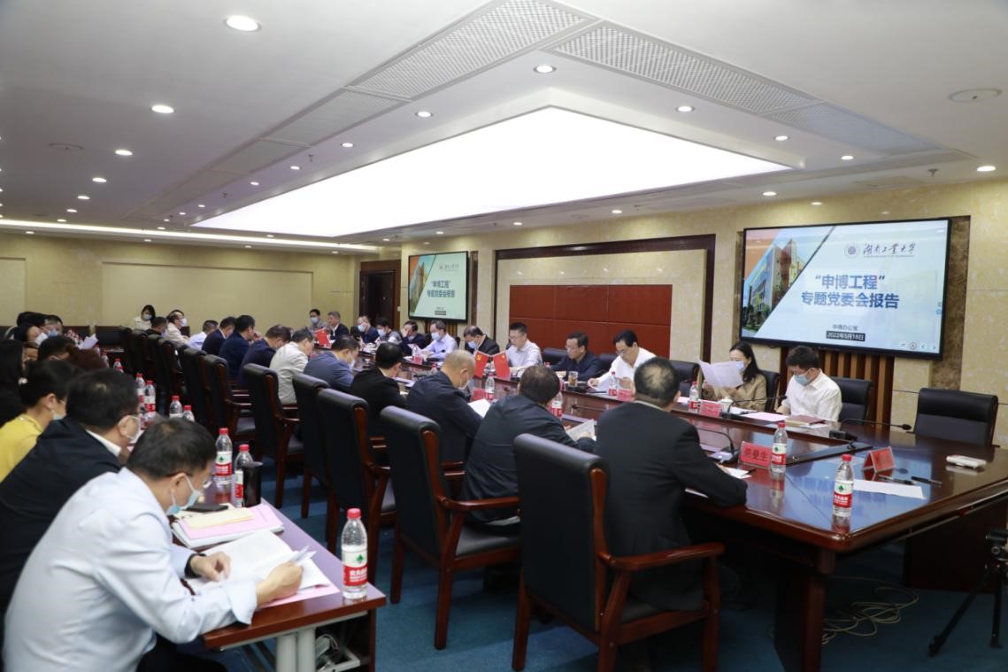 副校长龙永红就“申博工程”推进情况、目标及挑战、建设任务、保障措施等四个方面做专题汇报。他全面总结了目前“申博工程”的推进情况,明确了“保复核通过、保二争三”这两项战略目标,对标对表建设任务梳理了当前面临的困难和挑战,并对复核验收工作进行具体部署。他指出,确保博士建设单位复核验收通过,需要进一步完善运行体制和机制,加大经费投入力度,优化资源配置方式,建立激励约束机制,抢抓机遇,攻坚克难,为早日建成工业科学融合创新,包装教育特色鲜明的综合性大学努力奋斗。