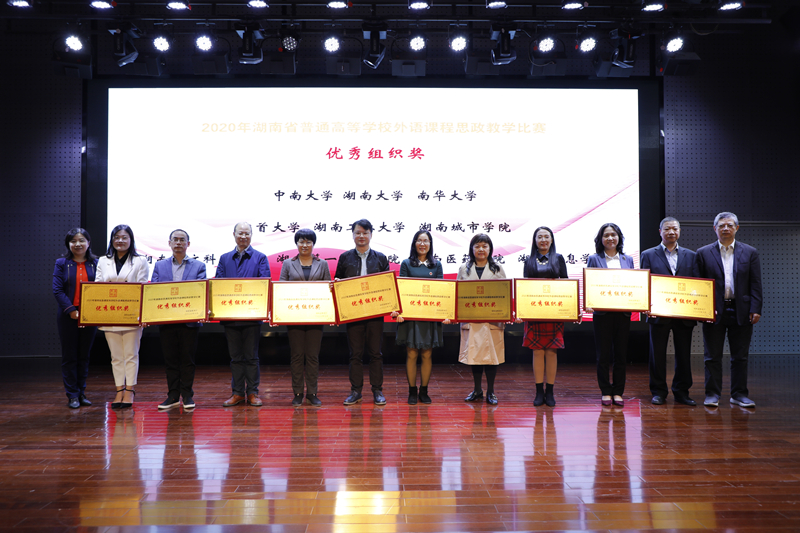 为促进“课程思政”教学改革,推动外语课程与思政教育深度融合,10月22日至24日,由湖南省教育厅主办,湖南省普通高校外国语言文学类教学指导委员会承办,湖南工业大学和高等教育出版社共同协办的2020年“湖南省普通高校外语课程思政教学比赛”决赛在我校外国语学院成功举办。