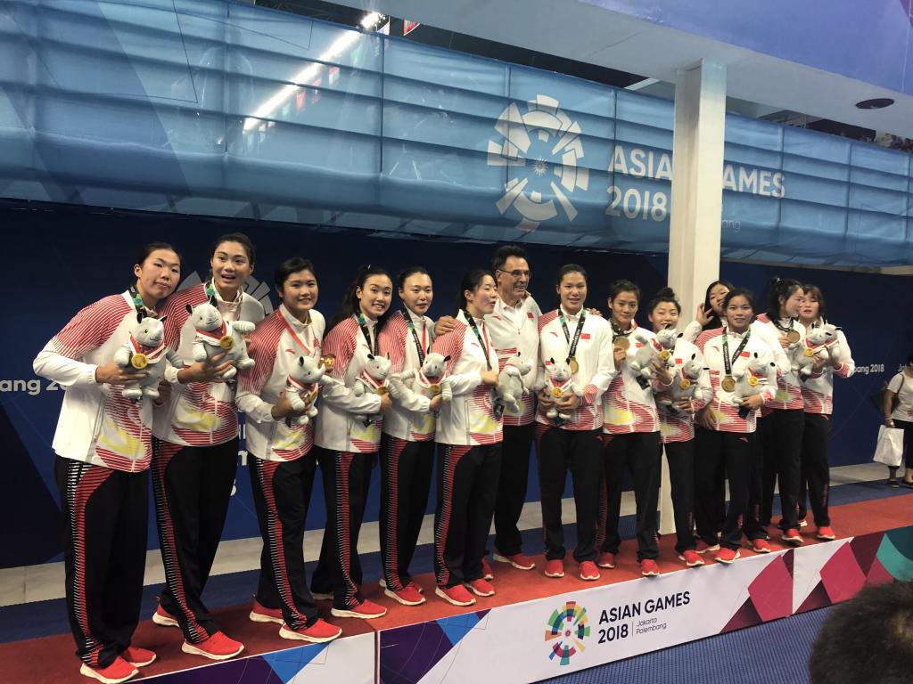 雅加达时间821日下午,第十八届亚运会女子水球比赛在格罗拉蓬卡诺水上中心进行,中国女子水球队以163战胜中国香港队,以五连胜的成绩实现了亚运会三连冠,这也是本届亚运会球类项目的首枚金牌。