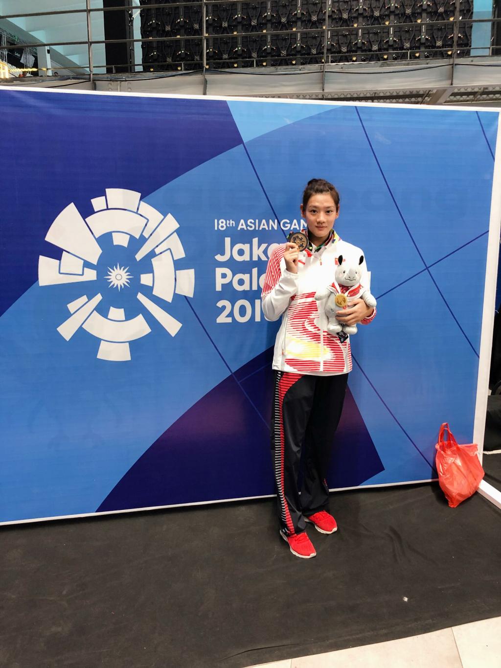 我校体育学院运动训练专业1701班学生翟颖作为中国女子水球队一员,表现十分突出,与队友们奋力拼搏,顺利摘金。翟颖于2017年进入我校,今年入选国家女子水球队。这是她首次参加亚运会,夺冠后的她立马打电话给国内的亲朋好友,同他们分享了自己的喜悦。