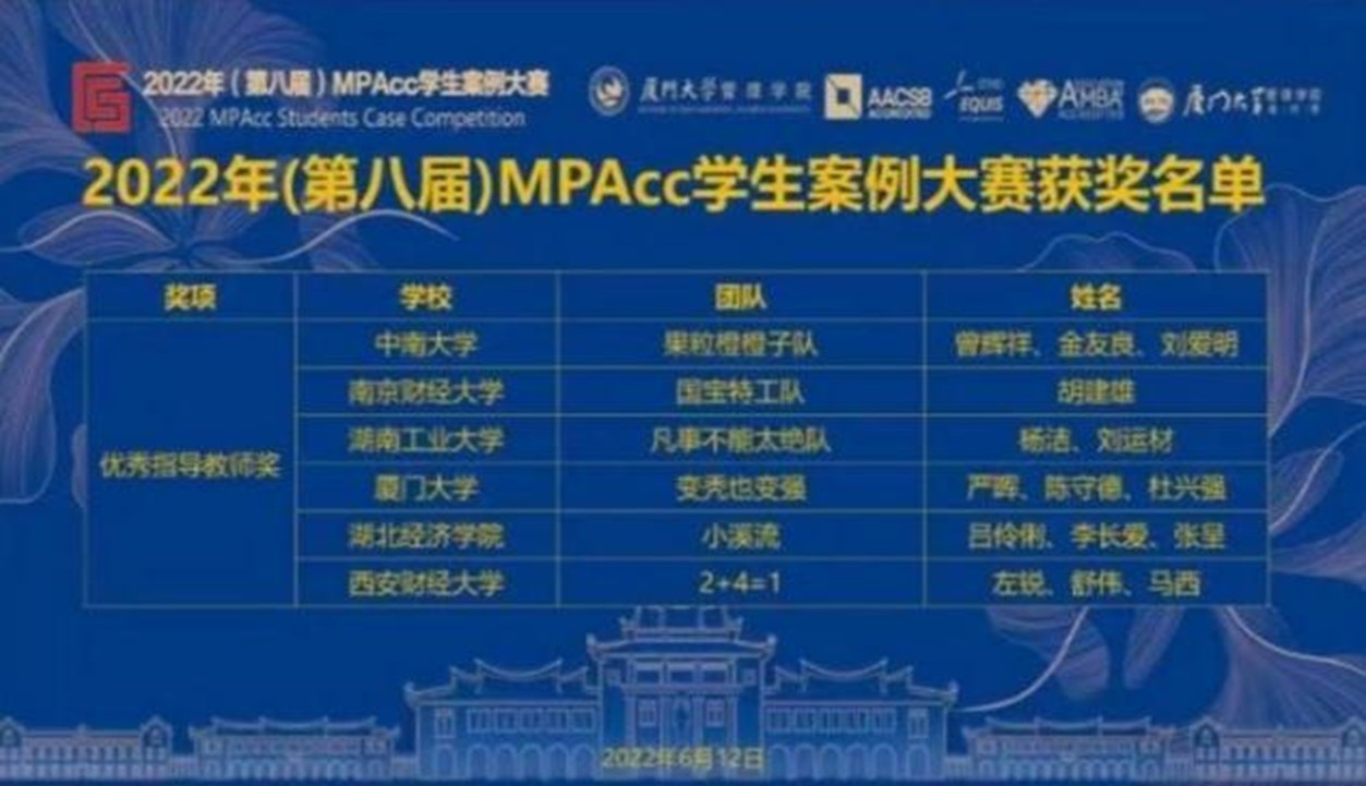 6月12日,第八届MPAcc学生案例大赛总决赛落下帷幕,湖南工业大学经济与贸易学院杨洁教授、刘运材副教授指导的参赛团队“凡事不能太绝队”从全国七大赛区近3000余支队伍中脱颖而出,在全国总决赛中荣获一等奖!两位指导老师荣获优秀指导教师!