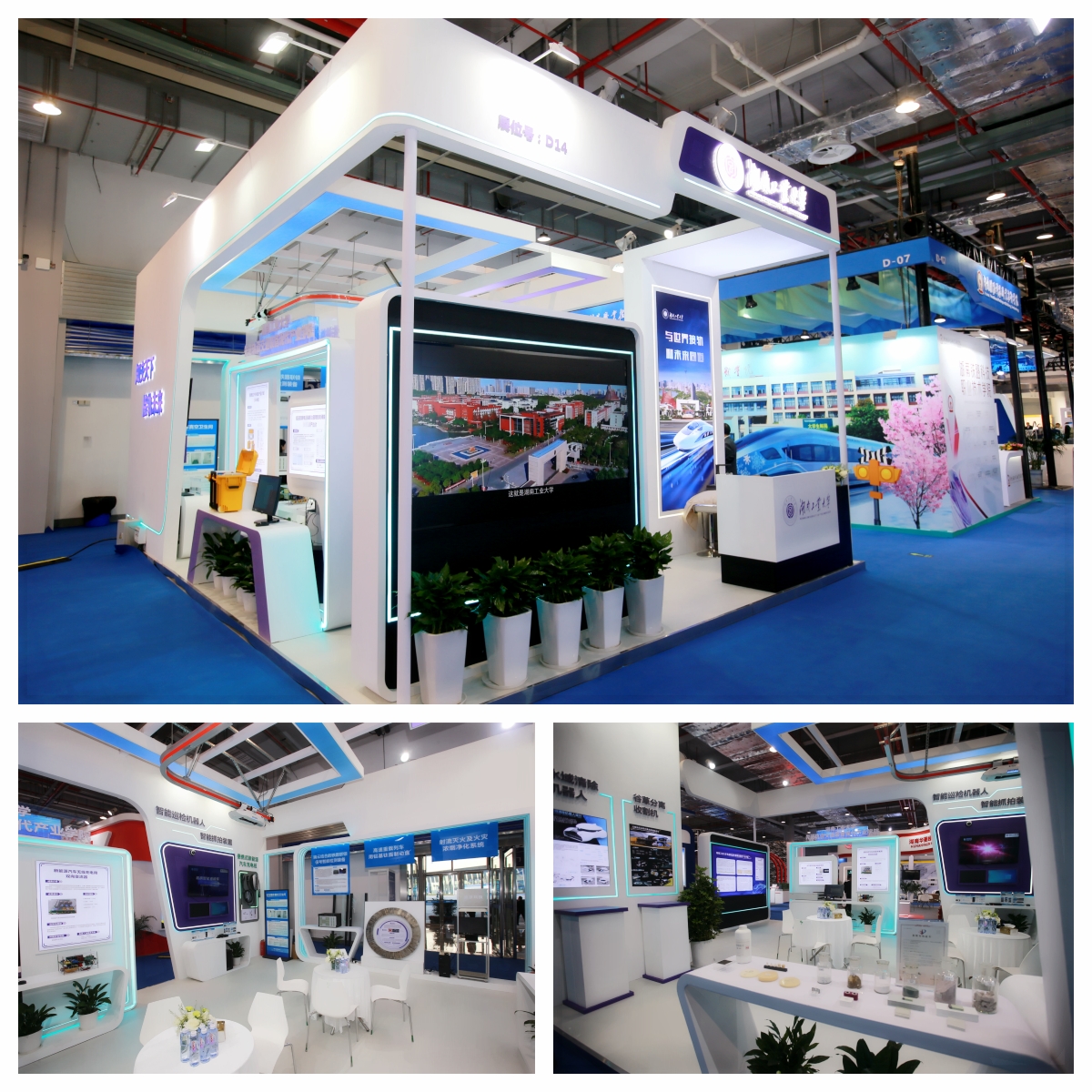 本次展会布展面积超6万平方米,分轨道交通装备制造、轨道交通关键零部件等五大主题展览。我校展位c位出道,设于D馆5号厅入口处。展位整体风格简洁,分轨道交通现代产业学院介绍、老师重大科研成果和学生创新创业成果三大板块,采用交互大屏、模型、样品、展板等多维立体方式呈现,主打工业风和科技感。本次我校集中展出了18项科技成果,其中智能巡检机器人、机车整体真空卫生间、高速重载列车用铝基钛面制动盘、新能源汽车无线充电用双向变流器、新能源汽车无线充电用双向变流器格外吸睛,引得嘉宾驻足观看。