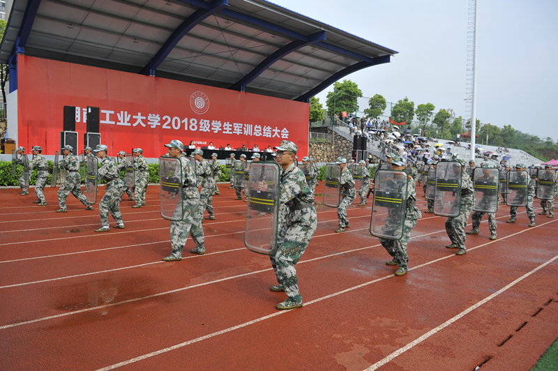 学生方队代表和教官代表进行了警棍盾牌操、擒敌拳等汇报表演。随着“开始”指令的下达,同学们分别成训练队形散开,一招一式干净利落、孔武有力,展现了当代大学生朝气蓬勃、顽强奋斗的精神风貌。