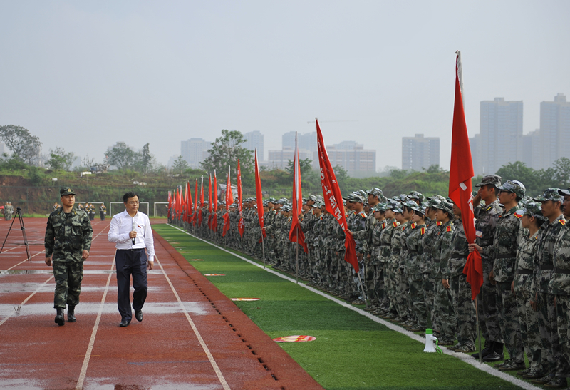 党委书记、校长谭益民对学生方阵进行检阅