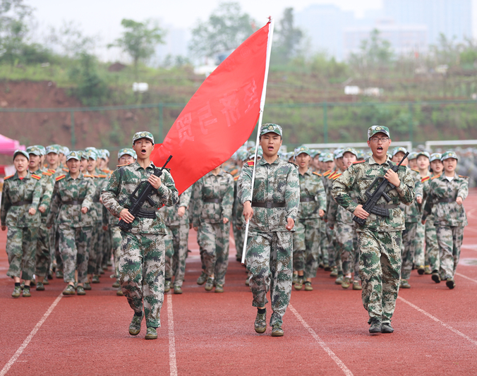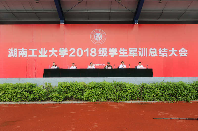 4月25日上午,我校在河西校区第二田径场举行2018级学生军训成果汇报暨总结表彰大会。党委书记、校长谭益民,武警株洲支队参谋长朱李兵、党委副书记韩清波、纪委书记张亚东、副校长李若梅、校长助理朱和平出席,18个参训学院的党政负责人、学生辅导员、班主任及7561名2018级学生参加大会。