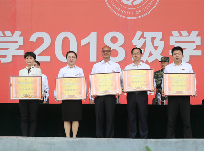 韩清波宣读了《关于表彰2018级新生军训工作先进集体和个人的决定》。与会领导为6个“军训工作先进单位”、6名“军训工作先进个人”、12个“优胜方队”颁奖。