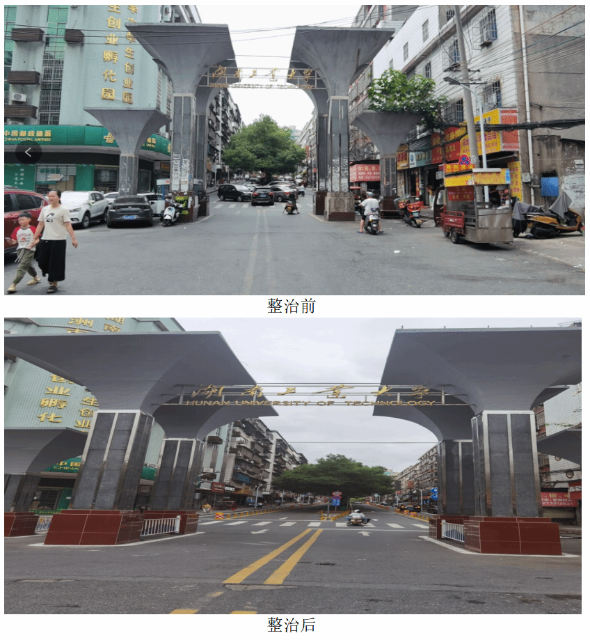 整治后,正门道路全线禁止停车,并纳入交警执法系统管理,东门道路两边禁止摆摊设点。