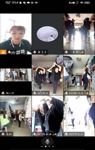 老师们严格按照学校对于线上授课的要求,充分利用现有的网络教学资源,积极寻求和探索适合音乐学院学生上课的模式,研究线上教学的有效方式方法。为了确保授课质量,让学生能够切实从线上教学中得到获益,舞蹈系老师们化身“主播”,克服教学空间条件的制约,线上施展十八般“舞”艺,为学生们量身定制了一系列课程,如舞蹈基本功训练、舞蹈编导技法、中国民族民间舞、现代舞技术、中国古典舞身韵等。老师们通过提前布置视频和书面作业、现场分组分阶段互动教学;课前提前热身打卡、课后严格检查作业完成情况;逐一点评答疑;课后对教学效果进行反馈搜集等各种手段,积极尝试各种教学新方式,确保在线教学质量。授课过程中,教师对学生的完成度进行一一点评、讲解和指导,对完成度高的学生予以鼓励并全班示范,对不标准舞蹈动作一一纠正。