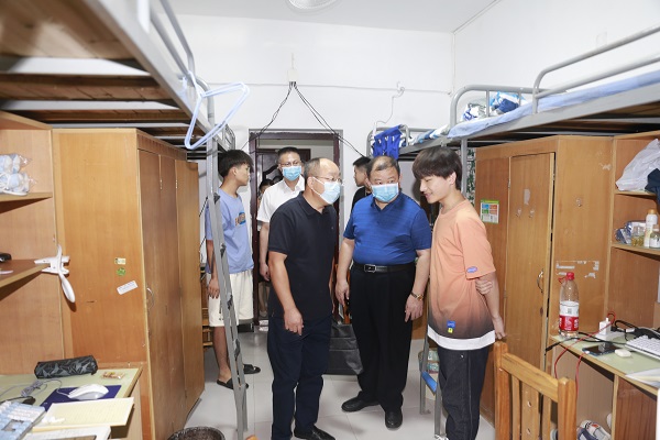 雷桂平一行先后深入学生宿舍、东苑食堂、隔离点等地,详细了解了学校师生返校、宿舍提质后勤保障和常态化疫情防控落实情况。