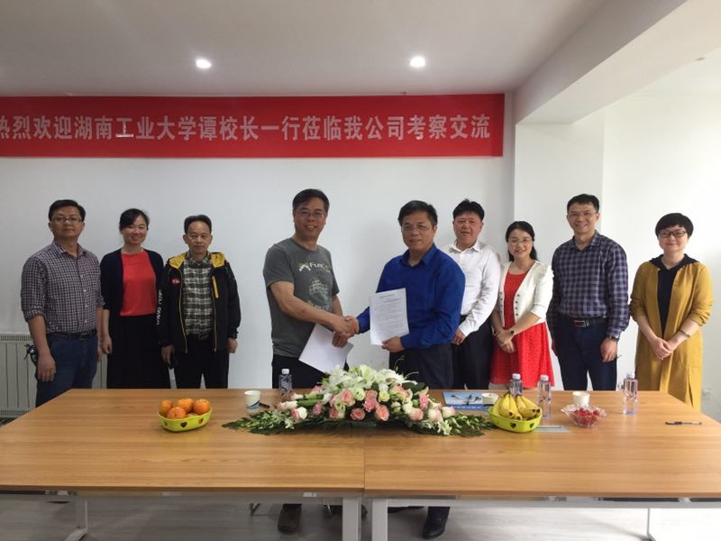 在北京创时能有限公司武汉办事处,谭益民参观了部分研究设施,现场体验具有3D效果的模拟仿真物流操作系统,并与公司高管、技术部负责人进行了交流。双方就校企合作建设物流仿真实验室、开展实践教学、师资培养等内容展开深入讨论,谭益民与公司总经理周向阳签订了实习实训基地合作协议。