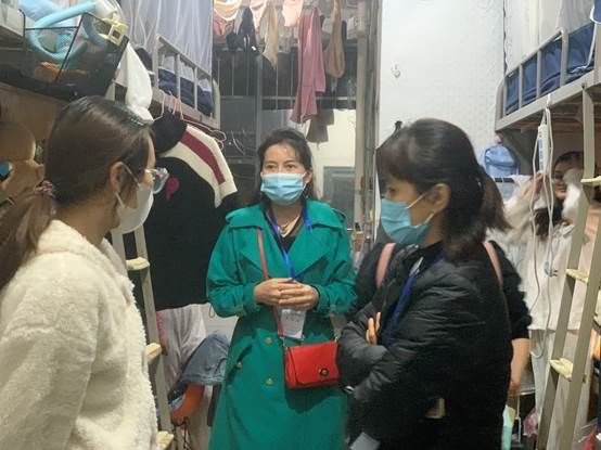 于兰英、王湘晖、王容、吴丹、王怡欢五位女同志,巾帼不让须眉,每日任劳任怨,手提肩扛干起重活也不在话下,其中王怡欢作为一名去年刚毕业入职的辅导员,资历新、年纪小,一张娃娃脸,但工作起来毫不显稚嫩,除了值守,还和同学们打成一片,是同学们和气可亲的学姐,同学们都乐于向她反映存在的困难、心里的疑惑,她也时时提醒同学们要注意宿舍通风、谨防感冒发烧,叮嘱同学们遇到困难要团结友爱、互相帮助并及时反映给辅导员或学院。