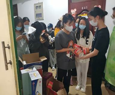 学院13名教职工带着行李住在办公室,十多天来日夜奔波在抗疫一线。他们每天在宿舍楼下现场办公,对学院防疫工作进行全方位的工作部署和调度安排;到学生宿舍走访慰问,对学生的饮食起居、在线学习、身体健康、心理状态等方面情况进行详细了解和记录,给学生耐心讲解学校的疫情防控政策要求,做好学生的安抚工作;他们身体力行,彻夜值守,在校内购买、搬运各种物资,为同学们送去关心与问候。
