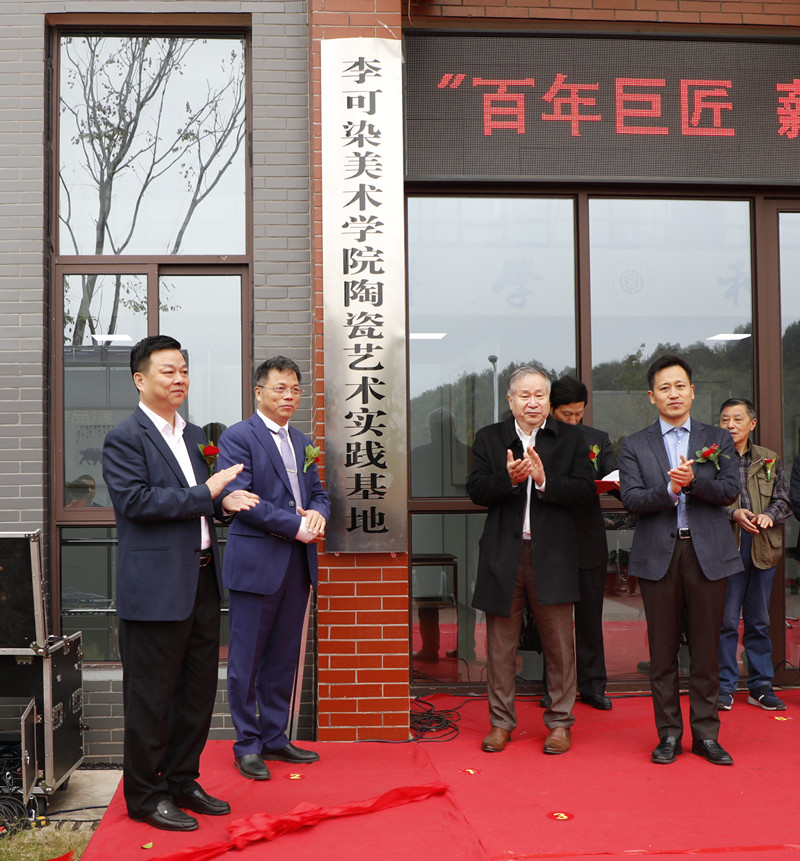 开幕式上,李庚、谭益民、刘扬、胡湘之共同为“李可染美术学院陶瓷艺术实践基地”揭牌。