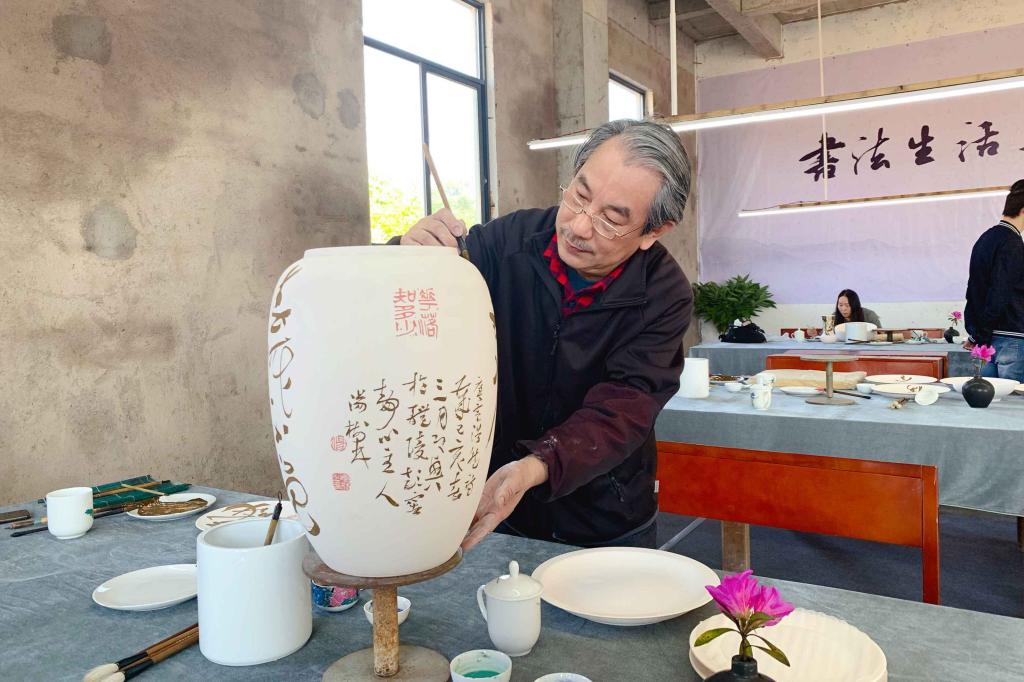 4月17日上午,我校邀请10位国内知名书法家齐聚醴陵鹏窑“书法瓷绘”创作会,在素胚上泼墨挥毫、笔走龙蛇,上演了一场艺术与生活交相辉映的盛宴,描摹了一批书法与瓷器水乳交融的艺术佳作。