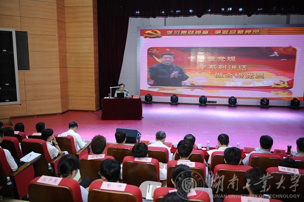 下午,黄跃进来到音乐学院报告厅,为我校300多名师生党员讲专题党课。他的党课以“学习贯彻党章,争做合格党员”为题,从“学习党章重点学什么”和“贯彻党章应该怎么办”而展开。他系统梳理了党的基本纲领,党员的标准、义务和权利,党的组织制度,党的纪律等内容;他强调,学习贯彻党章要求,担负起应尽的责任和义务,做一名合格党员,必须强化党性意识、忠诚意识、责任意识和纪律意识,始终做到思想不变质,信念不动摇;始终做到听党的话,追随看齐;始终做到为党办学,为党务学;始终做到清正教学,廉洁为师。