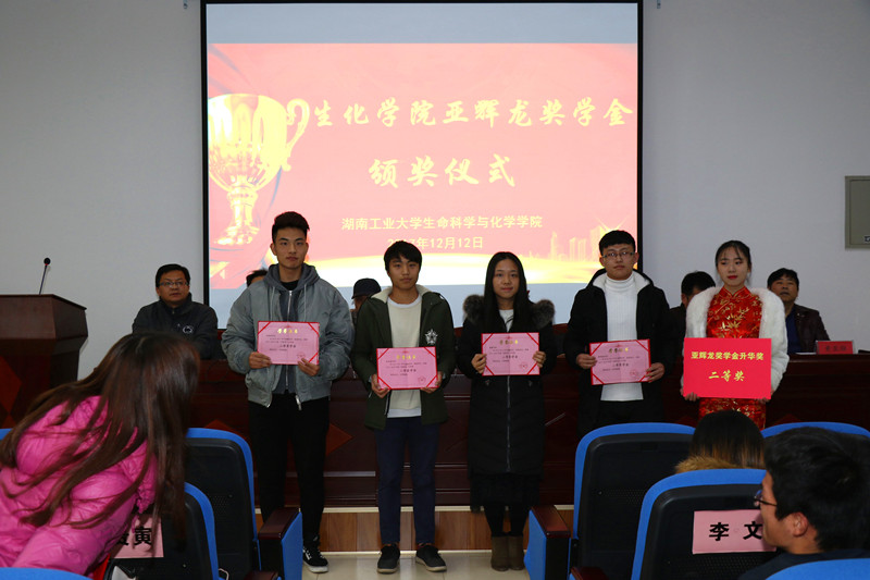 12月12日下午,生命科学与化学学院举行首届亚辉龙奖学金颁奖典礼。副校长罗定提、亚辉龙奖学金评审委员会名誉会长刘太刚出席,该院相关负责人以及师生代表160余人参加了颁奖仪式。