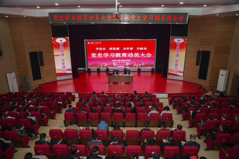 3月23日下午,我校召开党史学习教育动员大会,对学校开展党史学习教育进行动员部署。党委书记谭益民作动员报告。在校校领导出席,副处以上干部、师生党员代表300余人参加大会。党委副书记王利华主持会议。